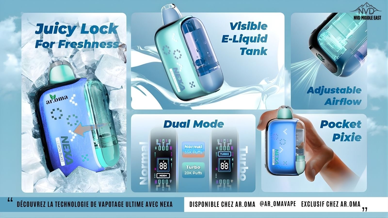 Le NEXA PIX 30K est équipé d'un système de résistance double mesh pour une vapeur constante et une saveur intense.Le mode Smooth pour jusqu'à 30 000 bouffées ou le mode Turbo pour environ 20 000 bouffées .intelligent affiche l'autonomie de la batterie, le nombre de bouffées et le niveau de e-liquide en temps réel.