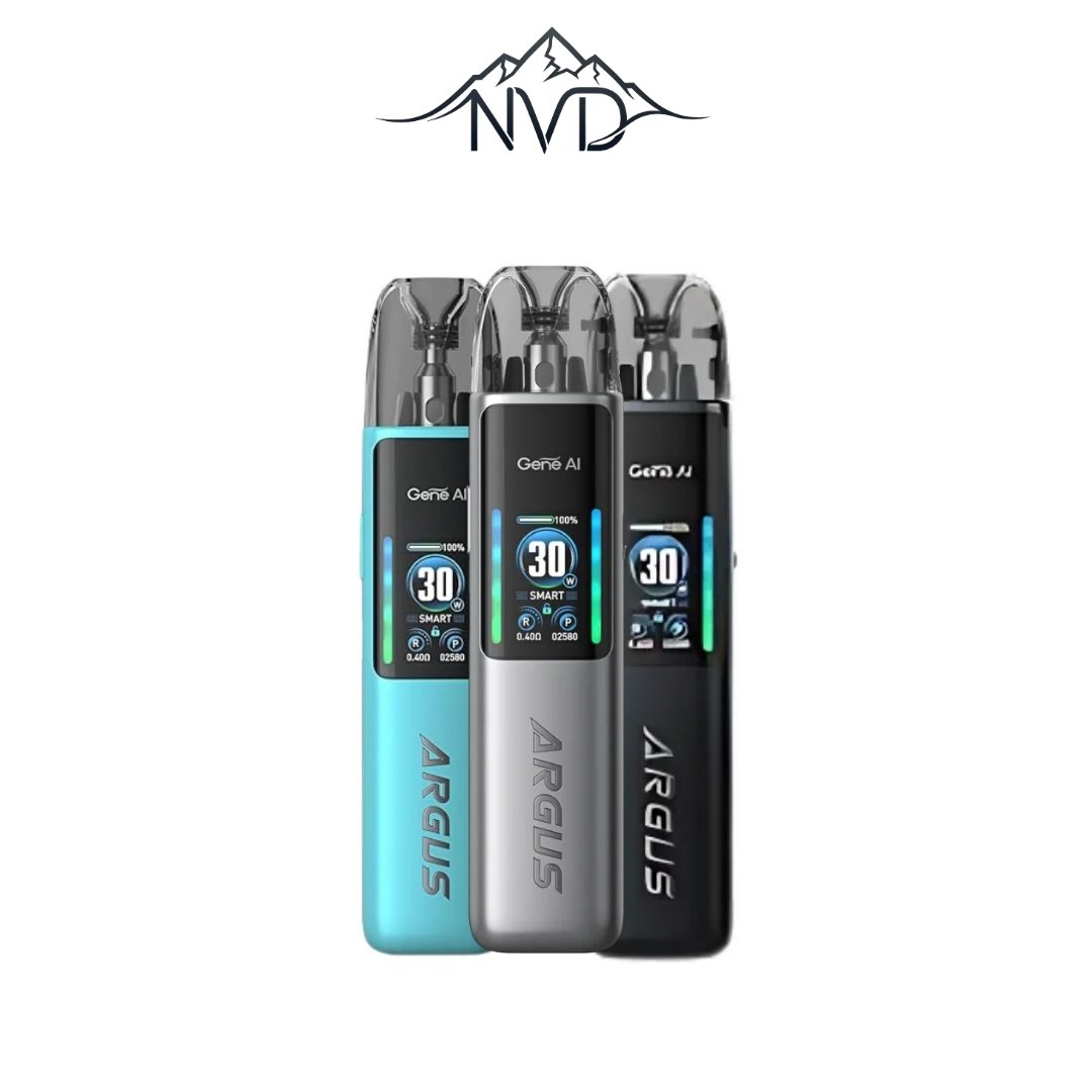 Puissance réglable de 5 à 30 watts, tension de 3.2 à 4.2 volts. Pod de 3.0 mL Matériau PCTG Résistances de 0.4 ohm et 0.7 ohm Batterie de 1000 mAh